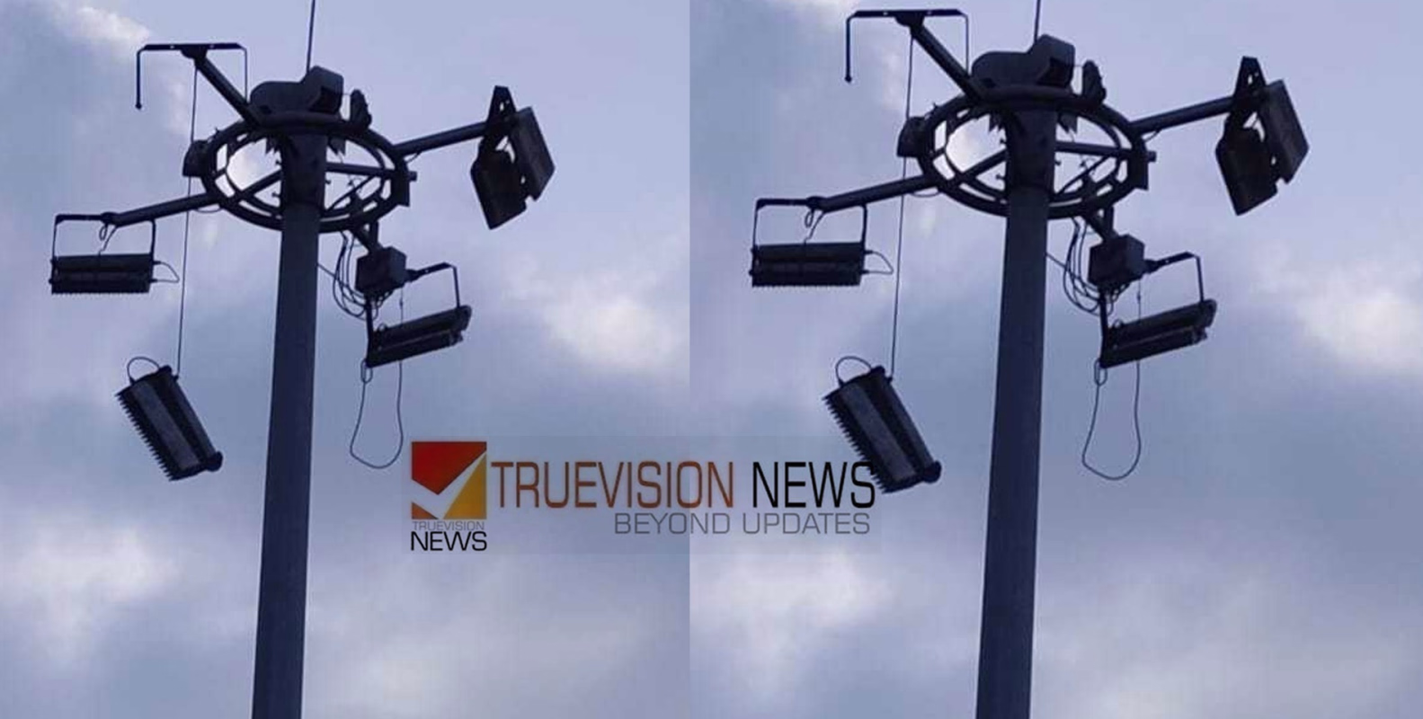 കത്തിയിട്ട് ഒരു വർഷത്തിലേറെ; കുരിയാടിയിൽ സ്ഥാപിച്ച ഹൈമാസ്റ്റ് ലൈറ്റ് അപകട ഭീഷണിയിൽ