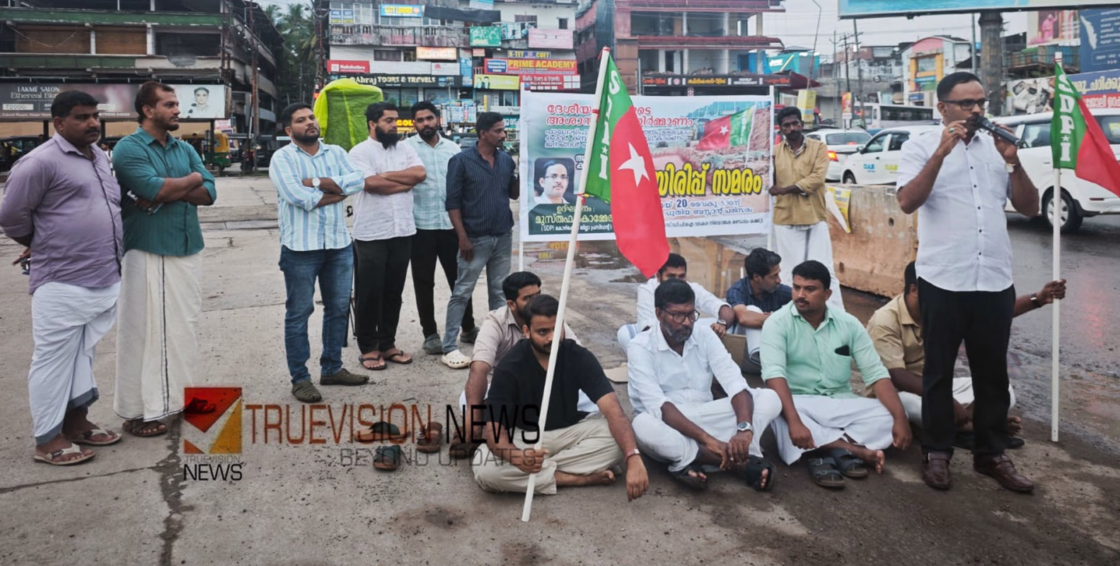 ദേശീയപാത നിർമ്മാണത്തിലെ അശാസ്ത്രീയത; വടകരയിൽ കുത്തിയിരിപ്പ് സമരം സംഘടിപ്പിച്ച് എസ്ഡിപിഐ